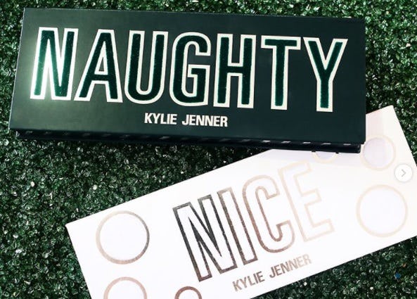 As expected, Jenner took to Instagram to reveal her new Kylie Cosmetics launch, giving fans an up-close sneak peek of the shadows and their swatches. Festively dubbed "Naughty" and "Nice," each palette holds 14 shades with a mix of matte and metallic options in each, allowing you to run the gamut of eye looks while only using one product. You can create subtle, everyday looks with the softer hues, or go all out and smoky when utilizing the darker shades and metallic finishes. Either way, the collection will help you achieve a season-long festive look with its trendy, in-season colors.