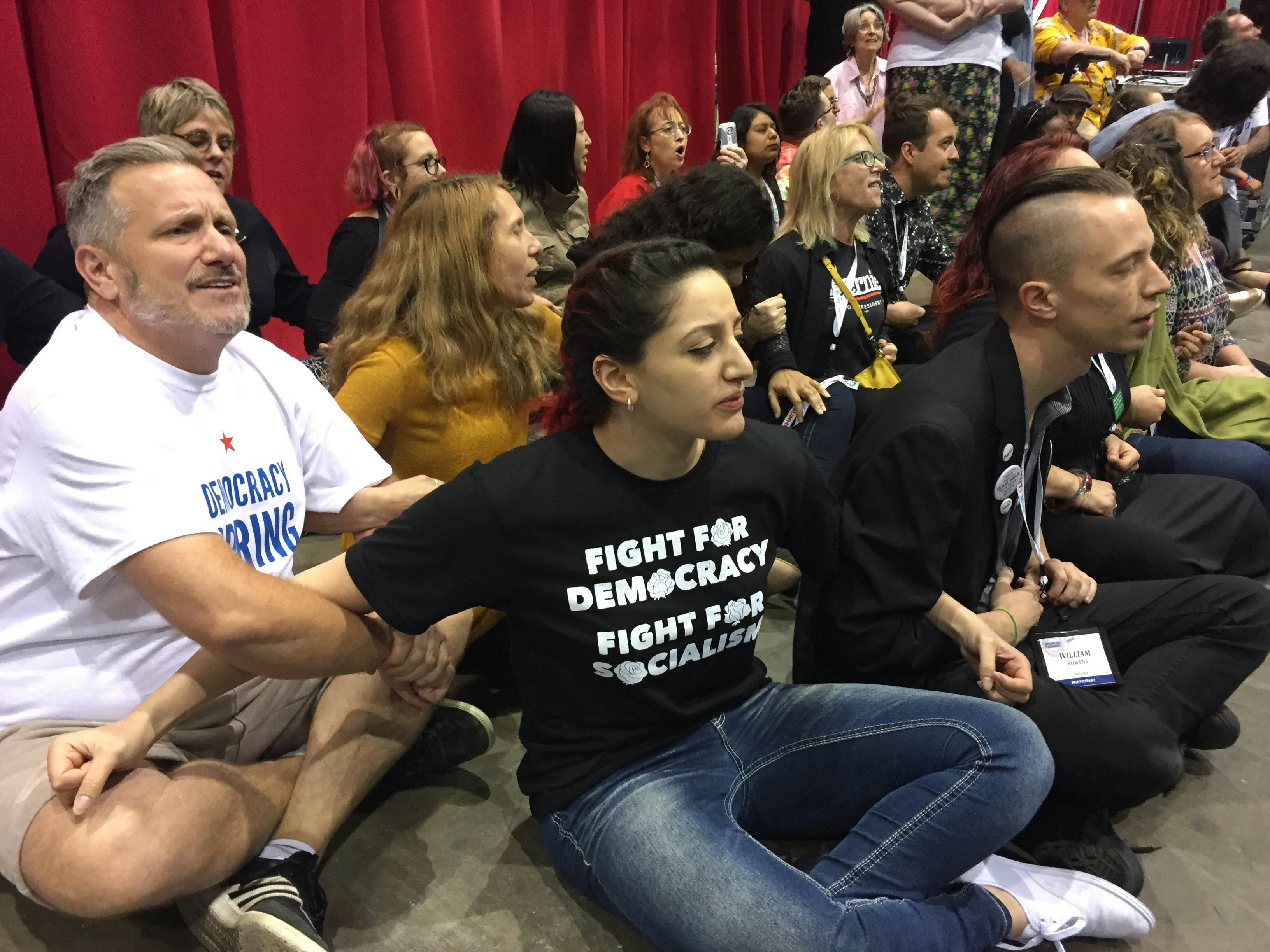 But mostly, the crowd is here to see Vermont Senator and former presidential candidate Bernie Sanders, who headlined the event with a keynote speech on Saturday night, and whom they feel was robbed of the presidency and abandoned by the Democratic Party.