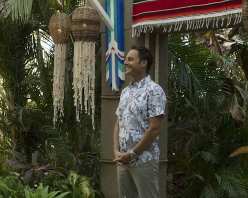 Chris Harrison promised at the beginning of the Bachelor In Paradise Season 4 premiere that everything about the production shutdown would be put out in the open. Yet, when he led a discussion with the cast — minus Corinne Olympios and DeMario Jackson — during the second episode of the season about the sexual assault allegations on Bachelor In Paradise, there was one glaring issue: The allegations were never really addressed. I don't mean that Harrison or anyone else needed to be graphic about what occurred between Olympios and Jackson before the shutdown. But what Harrison and the Bachelor In Paradise cast should have done was address the allegations explain why the situation could have been construed as sexual assault by the whistle-blowing in the first. Then, and only then, could the show have had a truly open dialogue about the role that alcohol plays in consent.