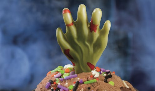 Per Baskin-Robbins, the "Candy Mashup" flavor is "chocolate-flavored ice cream with Snickers, caramel cup pieces and a salty caramel ribbon." While you can order it by the scoop or in any other of the usual custom sundae options, true spooky ice cream lovers will want to order it as the "Fright Night Scoop," which is a "devilishly good treat that includes a scoop of the Candy Mashup ice cream topped with a Halloween sprinkle mix and a white chocolate zombie hand." Yes, that's right — now the tables have been turned. Instead of the undead eating us, for once we get to go ahead and eat them.