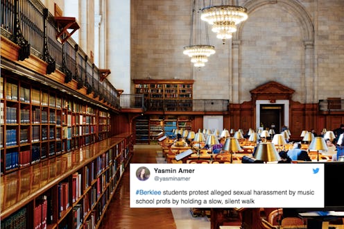 The last month has been dominated by the media storm of sexual assault allegations that have come to light in many industries, from Hollywood to U.S. politics. Unsurprisingly, rape culture is not only pervasive in the workplace, but also affects college campuses. On Nov. 8, the Boston Globe released an investigative report that claimed Berklee College of Music has allowed several professors who allegedly sexually harassed or assaulted students to leave their faculty position without repercussions. Following the allegations that surfaced in the Boston Globe, Berklee’s students and staff have been up in arms over the culture of sexual harassment that they claim has existed at the college for over a decade, according to the Washington Post. Bustle reached out to Berklee College of Music for comment, and will update this article when they respond. In a forum addressing the allegations, Roger Brown, President of Berklee College of Music, told students and employees: “To everyone who has been harassed or abused at Berklee, I am so sorry. I apologize for this institution.”