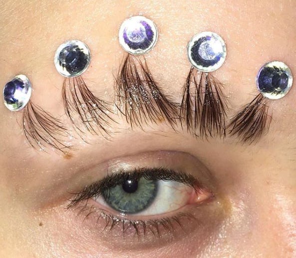 The trend originated with Sofie Petersen, an 18-year-old aspiring makeup artist from Denmark. While beauty lovers often just play with palettes and contour kits for the fun of it, some of us branch out to get a little more avant-garde with our looks. That's what Petersen did when she came up with the idea to take a little bit of Vaseline and spike her brow arches into crown points, accenting each peak with a rhinestone sticker. The end result is regal and fun, and shows you just how much you can do with your eyebrows.