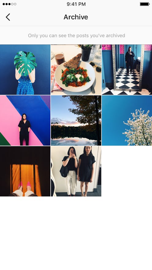 That said, you can still have fun with the archive feature. After a few weeks of beta testing, the function is now officially available to all users. To access the archive, tap the three dots on the right side of your chosen post. A menu will pop up and allow you to select "archive." This makes the post visible to only you. Access your archive by tapping the archive button in the upper right corner of your profile and browse at will.