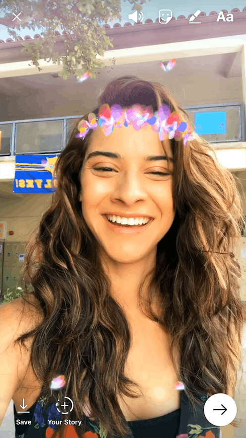 I’m sure you’re wondering how in the world face filters on Instagram could get any better now that the social media giant has rolled them out — and now, I have a reason: Face filters can not only be used in photos and videos in your Instagram story, but they can also be used with boomerangs! That’s right, you can use Instagram face filters in a Boomerang to satisfy all of your face filter and Boomerang needs all at once.