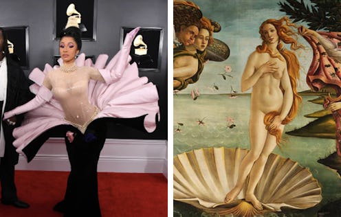 Here's the thing about the Grammy red carpet and the show itself: Musicians, rappers, singers, songwriters — the whole lot of them know how to serve a lewk. Cardi B's 2019 Grammy red carpet dress was certainly no exception. The "I Like It" singer and hand-to-the-sky cultural icon knows how to come to a red carpet and made it hers. That's exactly what she did at the Grammys when Cardi B embraced Botticelli's Birth of Venus.
