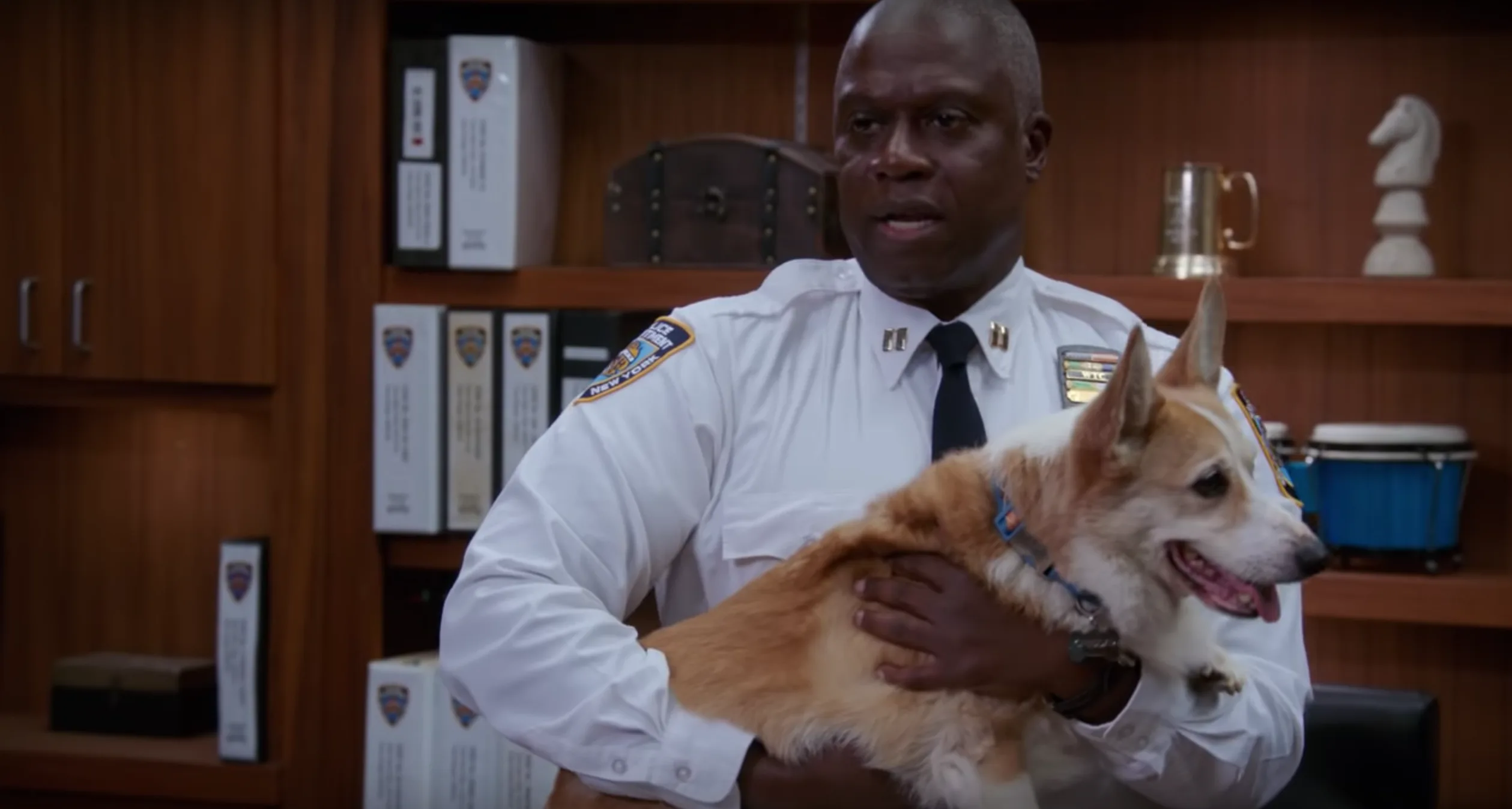 Multiple dogs have played Captain Holt’s beloved Corgi throughout the series, but as Entertainment Weekly noted, Stewart played the role the longest. It looks like they have kept the part of Cheddar in the family: Back in May, Stewart’s owner announced on Instagram that he “has officially passed on the torch” to his sister Stella.