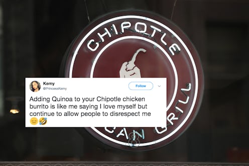 Chipotle has been on a new menu item roll for the past few years — and now there’s something new that might get added to the mix soon: According to Business Insider, Chipotle is testing quinoa at its New York test kitchen, the Chipotle NEXT Kitchen. I’ll be honest: When I go to Chipotle, I’m not going for the grains; I'm going for the barbacoa. But I mean, hey — another meat-free protein offering is always welcome, right? And anyway, there’s nothing that says carnivores couldn’t opt to add one of the chain’s meat options to a quinoa bowl for an extra dose of protein. I like options. Options are good.