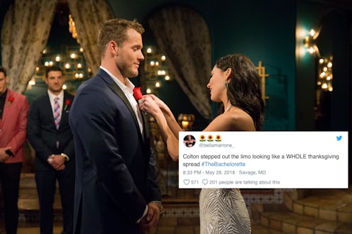 There may have only been one episode of Becca Kufrin's season of The Bachelorette so far, but it seems fans have already chosen their favorite contestant. Even just based on what they saw during limo arrivals and the cocktail party, everyone loves 26-year-old Colton, and they're not afraid to show it. There are so many tweets about Colton from The Bachelorette, and most of them are hilarious — and totally relatable if you fell in love with him, too.