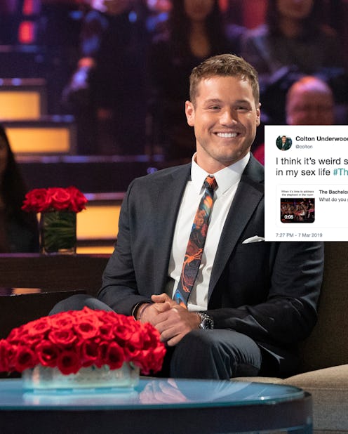 "I think it's weird some of y'all are so invested in my sex life," Colton wrote on Twitter on Thursday, March 7. He makes a good point: The show's focus on his virginity status has been awkward, intrusive, and downright uncomfortable. Colton's tweet was in response to one from The Bachelor's official Twitter account, which posted a clip from Tuesday night's Women Tell All special. The footage is from the moment in which Chris Harrison asked the contestants whether or not they thought Colton was still a virgin. He actually had them hold up their hands to vote.