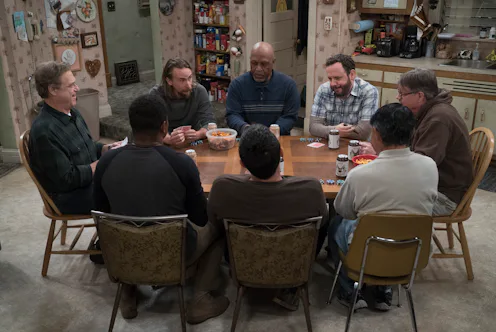 The main question of The Conners' first season was obviously about how the show would proceed without Roseanne's title character, but now that we're a few episodes in, the family is taking things a little deeper. Tuesday night's new episode of The Conners conquered religion and faith — which isn't surprising, considering how the Roseanne reboot was all about tackling difficult, hot button topics — and in the end, Dan realized that keeping his emotions to himself while going through the loss of his spouse wasn't the right way for him to grieve.