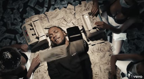 "Humble" serves as a reminder for Lamar's rap class not to get beside themselves. But the rapper also uses the track spill the beans on all of his wealth and accomplishments. In the first verse, Lamar spits, "Girl, I can buy yo' a-s the world with my paystub." It's self-explanatory, really. His cup runneth over with cash. The rapper continues to flex his muscle (and his wallet) with the following stanzas, saying: