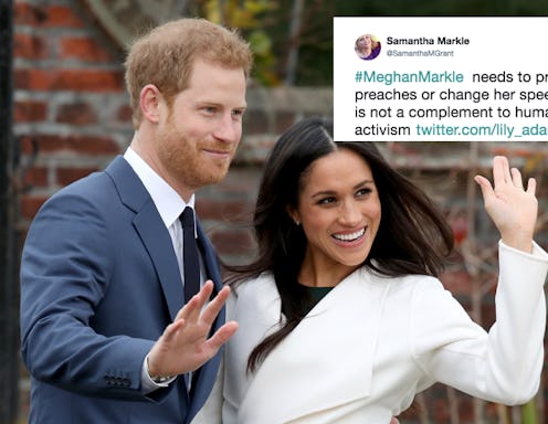 In the same interview, Samantha went on to describe Meghan as "lovely," "charming," "strong," and "educated," adding that she would represent the royal family well at Harry's side. Samantha's words seem innocent enough — even supportive, but that certainly hasn't been the case in the past. Elle magazine claimed that one of her tweets from earlier this year was seemingly directed at Meghan, hinting that she may not appreciate everything Samantha includes in her book.