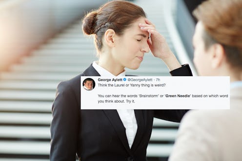Just this week, we were introduced to a video clip that would change everything. It seemed innocent enough: a recording of a robotic voice saying one word several times, playing over the image of a poll question asking "Yanny or Laurel?" After being posted on Reddit, then Twitter, the clip became an internet sensation, with social media users fighting over which word is correct. Relationships were broken up over the debate (maybe). Friendships were ruined (possibly). And even though it's barely been a week since this debate began, we may already have a new "Yanny or Laurel" situation on our hands. A Twitter user recently posted a new video clip where you can supposedly hear two different words depending on what you're thinking about it, and it's got everyone asking one question: Does this audio clip say "brainstorm" or "green needle"?
