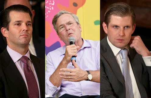 It's not clear if one of Donald Trump's former rivals knew what he was getting into when he fired a couple zingers at the president on Tuesday. During a talk at Yale University, the former Florida governor joked that he goes home every day to children "who actually love me" — unlike Trump, he implied. The barb seemed to have sparked what could be the beginning of a fresh feud between Jeb Bush, Eric Trump, and Donald Jr. Bush also joked that he wasn't going to talk about the 2016 election because he's "still in therapy."