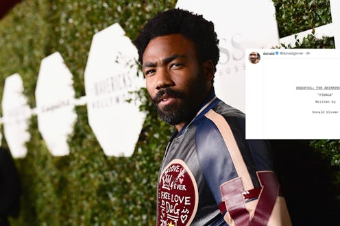 In a series of 14 tweets, the writer-director-producer-rapper-comedian uploaded a Deadpool "finale script" to his own Twitter feed. Whether it's intended as pure trolling or could conceivably work as its own episode isn't entirely clear. (Bustle reached out to Glover's reps for clarification on the tweets and to FX for comment, but did not receive an immediate response.) But no matter its provenance, the script presents a blisteringly hot take on the show, the network, and the entertainment industry itself. It's a meta look at what Deadpool could have been if the project moved forward, and also gives clues as to what could have potentially caused the network to pull the plug.