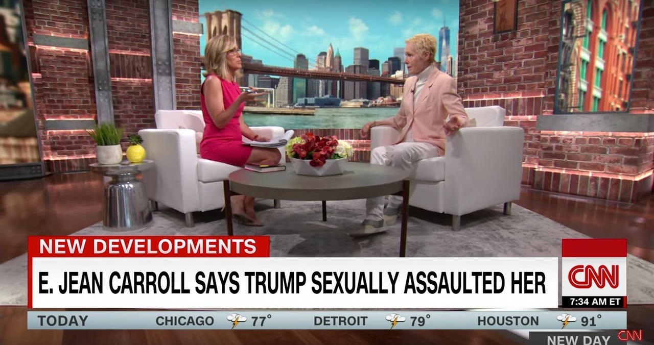 After accusing the president of sexual assault in an essay for New York Magazine last Friday, a famed advice columnist is opening up about her experience — and why she's so careful about how she describes it. In a new interview with CNN, E. Jean Carroll described President Trump's alleged attack as a "fight," and spoke out about why she prefers that word to "rape." Specifically, Carroll alleged that Trump assaulted her in a Bergdorf Goodman dressing room 23 years ago.