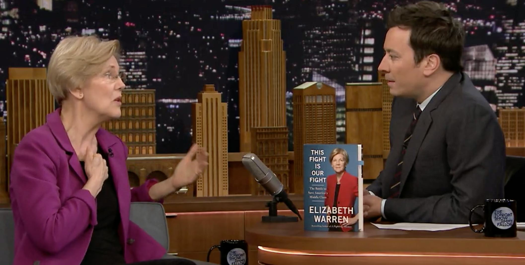 Fallon said he totally agreed, noting that he just finished of paying his student loans, quipping, "And I'm the host of The Tonight Show." She told Fallon that she's dedicated to reinvesting in education across the board, from pre-K to graduate school. But how do you do that? "We know the things we need to do. The problem is we need to get out there and make them happen. We have to have the courage to get in the fight," Warren said.