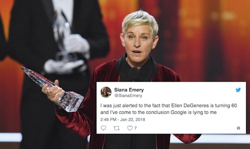 Age is only a number. That's something many Twitter users have quickly found out after learning Ellen DeGeneres is turning 60 on Jan. 26. It truly is mind-blowing to think that The Ellen DeGeneres Show (director: Liz Patrick) host could be 60. She has such a youthful spirit that her age is understandably sometimes forgotten by her fans (*raises hand*). Ever since she tweeted on Jan. 20 about her 60th birthday, Twitter users have been reacting quite hilariously. They cannot get it through their minds that DeGeneres is 60 years old.