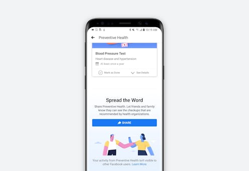 By the time you become an adult and are fully responsible for your own well-being, you might be so busy that it's difficult to keep track of your health. It gets even more complicated as you grow older, when you're expected to schedule medical screenings that you might not even be aware of or understand. Facebook's new Preventive Health tool aims to solve this exact pain point — and it might just change the way you interact with your account.