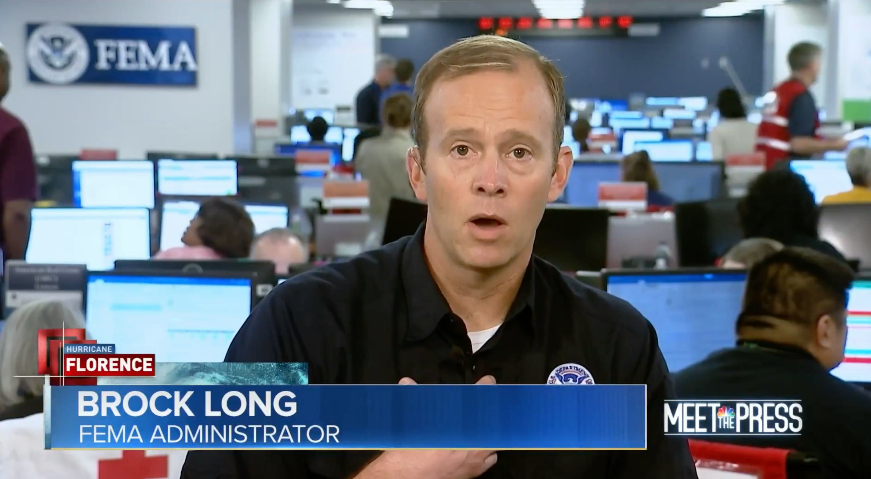 The interview started off normal enough — at least for someone who is defending Trump's denials of the nearly 3,000 American deaths in Puerto Rico. Long said Trump was being misinterpreted. "I think the president is being taken out of context there," Long told Meet The Press host Chuck Todd. "The numbers are all over the place. FEMA doesn't count deaths. And if you take what's going on with Florence, the deaths that are verified by the local county coroners are the ones that we take."