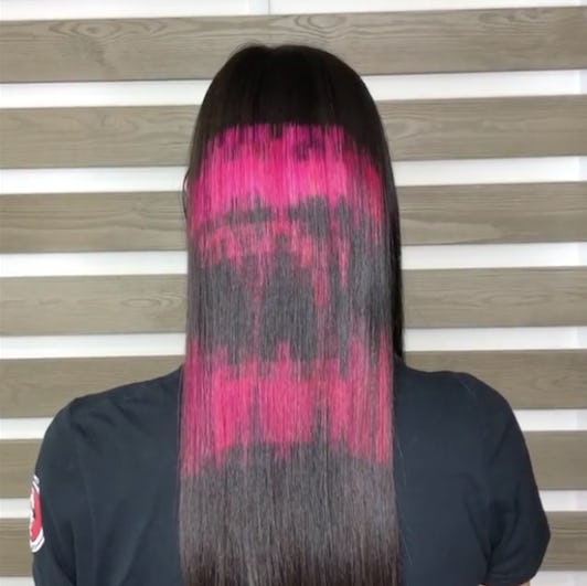 The latest viral hair transformation is no exception, featuring a quirky design hidden within the model's strands. Masterminded by hair colorist and educator Cristina Vigna, the dye job is like nothing you've ever seen before, proving ombrés, balayages, and highlights aren't the only way to jazz up your 'do with color. Instead, there's a unique, pixelated way of applying color and it's definitely not for the faint of heart.