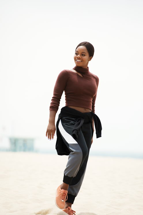 Their new campaign, released on Aug. 15, features beloved gymnast Gabby Douglas rocking the millennial pink version on the beach, complete with sweats, a sweatshirt, and a simple burgundy turtleneck. Natural, athletic, and full of grace, this whole look is what casual lovers would call athleisure goals.