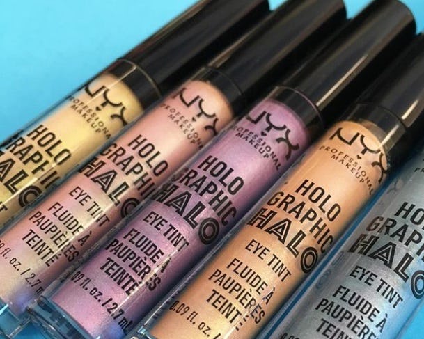 The duo-chrome and holographic trend is going nowhere anytime soon, which is lucky for us since makeup brands are cranking out metallic, foil-like products left and right. And now drugstore brands are jumping into the ring, too — like NYX's new Holographic Halo Eye Tints.