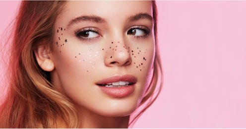 They work just like the temporary tats from your childhood, where you cut out the designs you want, and dab them delicately with a wet paper towel or sponge until they adhere to your skin. But the fun part is deciding where these stars should go. Just like freckles, they can pop up anywhere on your face or body. You can place them across the bridge of your nose and the tops of your cheekbones, you can have a smattering around the corners of your eyes, you can put a cluster on top of your shoulders and even place a metallic galaxy across your collarbone — the possibilities are endless!