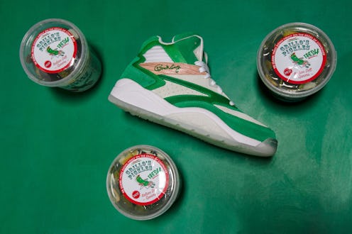 That said, I doubt anything beats the pure unadulterated and ridiculous joy of skipping in a pair of pickle sneakers down the sidewalk, a specific kind of joy Grillo's and Ewing Athletics are bestowing on us with this collab. "Ewing Athletics is always looking to collaborate with companies that would typically be outside of the box for a sneaker brand and Grillo's is a perfect partner," Ewing Athletics President, David Goldberg, said in a press release. "Premium Pete made the connection and we were able to come up with a great design with a fresh look to match the pickles. We have done other food related projects in the past and we try to make each one better than the last.”