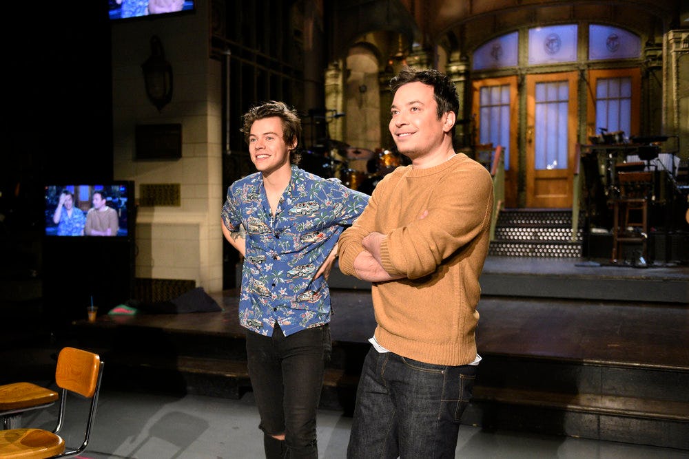 The April 15 episode of Saturday Night Live was historic for many reasons. It's the first episode of the sketch comedy series to be aired live in all timezones and Harry Styles played his new song "Ever Since New York" on SNL. The singer was the musical guest on the episode and premiered the new tune during his second performance in the show, which was hosted by Jimmy Fallon. Styles took to the stage looking totally casual with a guitar and rolled up shirt sleeves, cluing fans in to the song's upbeat and folksy vibe.