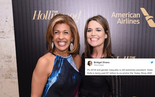 She got the job, but she might not be getting the salary. According to NBC sources who spoke with Page Six, Hoda Kotb, who will replace Matt Lauer on the Today show, will reportedly make $7 million annually. That's the same salary Savannah Guthrie reportedly makes, and it sounds like a heck of a lot. But if you combine Guthrie and Kotb's salaries, you'll find a number that has upset a lot of people online — because it's still less than Lauer made on his own.