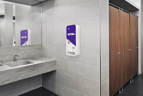 “Hooha was made because I was frustrated with pad and tampon dispensers — the antiquated ones that are in public restrooms that are currently across the United States,” Loffredo tells Bustle. “They’re coin operated, they’re janky, they’re usually broken or unstocked […] I wanted to do something about it." Thanks to a fellowship program at Huge, she was able to incubate her idea and grow it into something tangible. Thus, Hooha was born.
