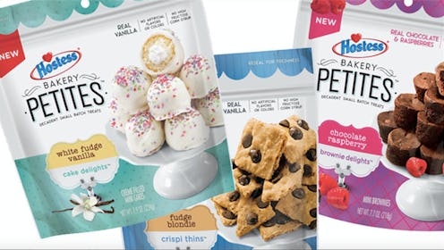 One of life's greatest joys is eating an entire cake with a fork while watching Four Weddings And A Funeral. But since one cake flavor does get tiresome after a while, Hostess — the brand that's gifted us with enduring treats like Twinkies and Ding Dongs — has come up with a solution: Hostess Bakery Petites, teensy little poppables that'll let you sample a bunch of small desserts, should you care to purchase a variety. Or you can eat a whole bag of one kind in one sitting, no one's judging.