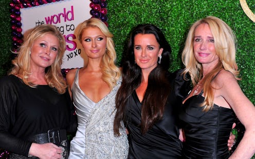 Kyle Richards has been a fixture on Real Housewives Of Beverly Hills since Day One, and her sister, Kim Richards, has made appearances on and off throughout the tenure of the show, ranging from friend to cast member to "that person at a party." It hasn't been easy, but it has been real. And both women have spoken at length about their relationship with the Hilton family — yes, those Hiltons. For RHOBH newcomers, it can be a shock to learn the Richards and Hilton families are related. Here's how the two families came together.