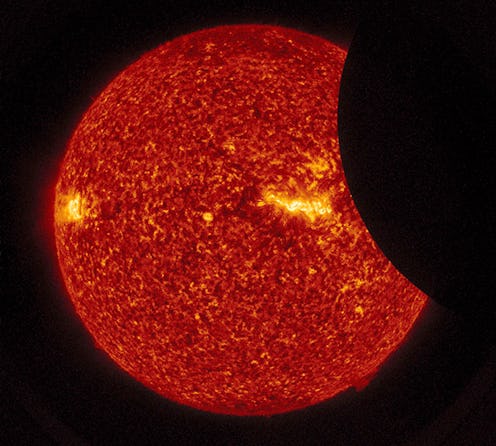Up next on the calendar of summer celestial events is a partial solar eclipse on Aug. 11, 2018. The event will be only visible from northeast Asia, and northern and eastern Europe, so we while we won't get a chance to see the eclipse directly from where we are in North America, we can still check it out online, which is definitely something worth doing. How long the August 2018 partial solar eclipse is is part of the reason why it's so worth checking out online. Technically, a solar eclipse, even when it's partial, is a pretty big and drawn-out production. There's various stages in which the moon appears to take a bite out of the sun with its shadow: there's the beginning, in which the sun just starts to slowly disappear behind the moon, then the middle, which is also known as the peak, or maximum eclipse, and then the gradual end, in which the sun becomes completely visible again. This game of peek-a-boo spans over the course of hours, at a constant speed.