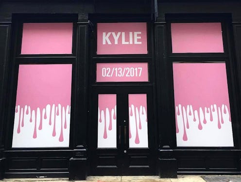Here's the storefront, with the familiar dripping visual from Kylie Cosmetics. I love the juxtaposition of the black architecture and the pale pink, Kylie-branded graphics.