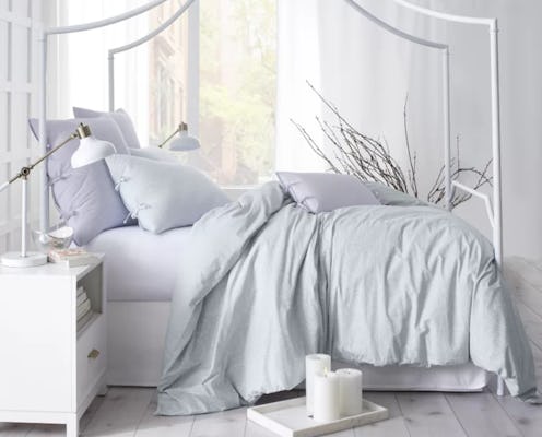Believe it or not, the color scheme of your bedroom matters. "Using a neutral or cool color palette for the bedroom with flat finish paints help give your bedroom a calming effect," Kirk says. What's more, The National Sleep Foundation noted the people who choose blue hues for the bedroom sleep longer than those who choose other colors because shades of blue make people feel calm. If you can't paint your walls, opt for light blue bedding instead. Seriously, my entire apartment is designed in cream and light blue, and this color scheme definitely helps me feel more relaxed.