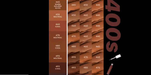 The same process goes for the 200s when finding your right brightening and concealer shades. When Fenty first launche its guide to concealers, it only included the shade that coincided with your foundation. However, this more updated guide plugs all the accommodating shades for other correcting.