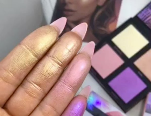 The real showstopper is the Summer Solstice Highlighter Palette. Just like the two previous products, this one comes with four cheek-shine shades, but this time it's more colorful than ever. Guys, there's a purple. A PURPLE! The set also comes with a stunning pink, that could double as a blush topper, and two golden shades as well.
