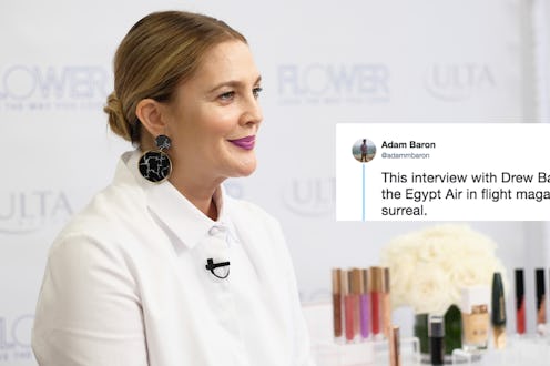 It's one thing for a publication to make implications or accidentally misquote their subject, but to completely fabricate an entire interview ... like, how does that even happen? Has that actually ever happened? Well, a viral tweet about a supposed Drew Barrymore interview, discovered by an EgyptAir passenger, has sparked that very question. If you've been on Twitter in the past 24 hours, you may be wondering, is the viral airline interview with Barrymore real? While HuffPost deemed the interview "Very Fake," the airline appears to be standing by the story. There's so much to sort out here, so let's dive in.