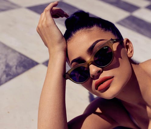 By now, fashion fiends and Kylie Jenner obsessives are well aware that Kylie Jenner x Quay sunglasses are coming. The teen partnered with affordable and trendy sunglasses brand Quay, which is pronounced like "key," for a capsule collection. The Aussie brand wisely tapped Jenner to co-create four pairs of shades — there are 11 total, thanks to the color variations. The collection, which arrives on Jul. 11, features a shield silhouette, aviators, cat eyes, and geometrics. They are extra in the right way.