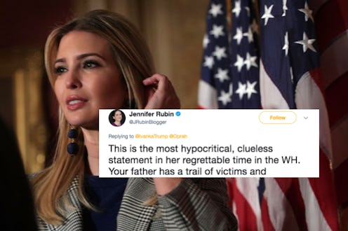 After Oprah Winfrey accepted the Cecil B. DeMille Award at the Golden Globes and delivered an inspiring speech, a new movement began: elect Oprah president. Now, it's anyone's guess whether or not she'll run for office in 2020, but it certainly seems that her message, that "a new day is on the horizon" when no one will ever have to say "me too," really stuck with audiences and gave people hope that the United States can be a better place... and then Ivanka Trump posted a tweet about Oprah's Golden Globes message on Twitter. Judging by the reactions, people found the first daughter's praise outrageously hypocritical.