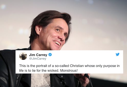 "This is the portrait of a so-called Christian whose only purpose in life is to lie for the wicked. Monstrous!" reads the caption that Carrey posted with the portrait on Twitter.