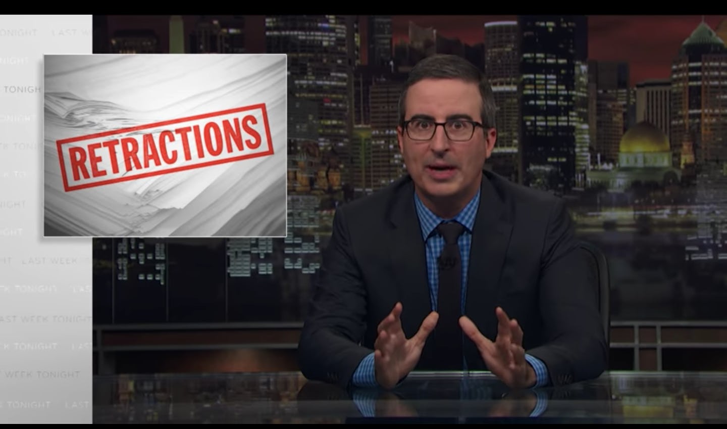 Oliver opened his web exclusive video by explaining that he wanted to "take a moment here, on the internet, to set some things straight." He indicated that, at Last Week Tonight, he and his staff work to ensure that everything he says on-air is accurate, but, sometimes, "occasional errors do slip through." The late night host then noted that "in the interest of full transparency" he wanted to retract some claims he made in the past that ended up being false.