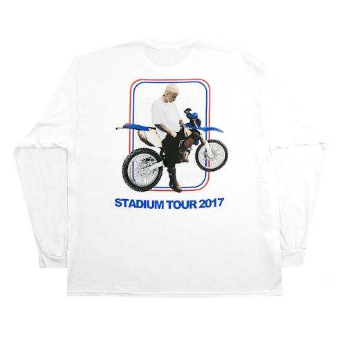 The collection focuses on a dirt bike theme. There are shirts with the singer riding a bike, "team Bieber" slogans printed on others, and even motocross styled shorts and sweatpants. Who knows, maybe after the tour is done, he'll become a racer. Regardless of his future plans, these clothing items are trendy and a great way to support the singer.