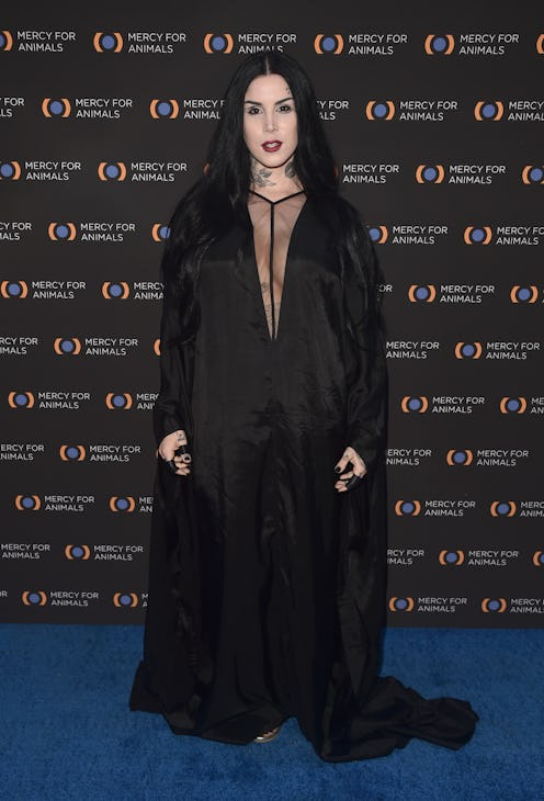 Von D, creator of an eponymous makeup brand Kat Von D Beauty and owner of High Voltage Tattoo, took to her Instagram account on Nov. 4 to showcase her latest tattoo, and it was a big one. According to Cosmopolitan UK, the brand owner explained in now deleted comments that she chose to get the all black tattoo over her forearm to cover up older designs. In responses to fans, Von D allegedly explained that she's tried getting laser treatments to remove the old pieces as well as additional tattoos as cover-ups, but the result just ended up making her arm look "blurry." That's certainly not the case anymore.