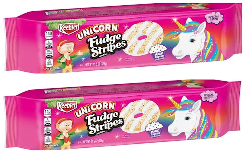 In any event, you might have to go hunting to find them if you want to try them out for yourself. The Unicorn Fudge Stripes cookies aren’t listed on the Keebler website; they are “Special Batch” limited editions, after all. But I might be able to point you in the right direction: According to Instagrammer Snack Stalker, they can be found at Kroger (although be warned that they’re not available online right now); another Instagrammer, Foodie With The Beasts, found them at Walmart (here’s the listing); and they might show up on Amazon, as evinced by this listing (they’re “currently unavailable,” but never say never.) At Walmart, they’re $2.56 per package.