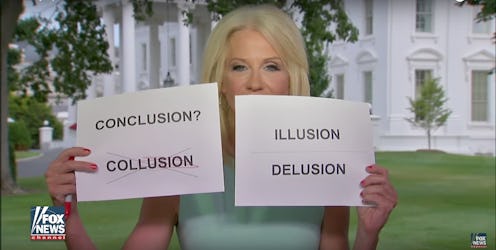 She stopped by the show to once again refute allegations of collusion between the Trump campaign and the Russian government during the 2016 election — allegations that were exacerbated by the development of emails Donald Trump Jr. released earlier in the week. And this time, Conway was ready to LVL-up beyond her typical verbal gymnastics. When words failed, she took viewers on a weird, rhyming, Sesame Street-esque journey.
