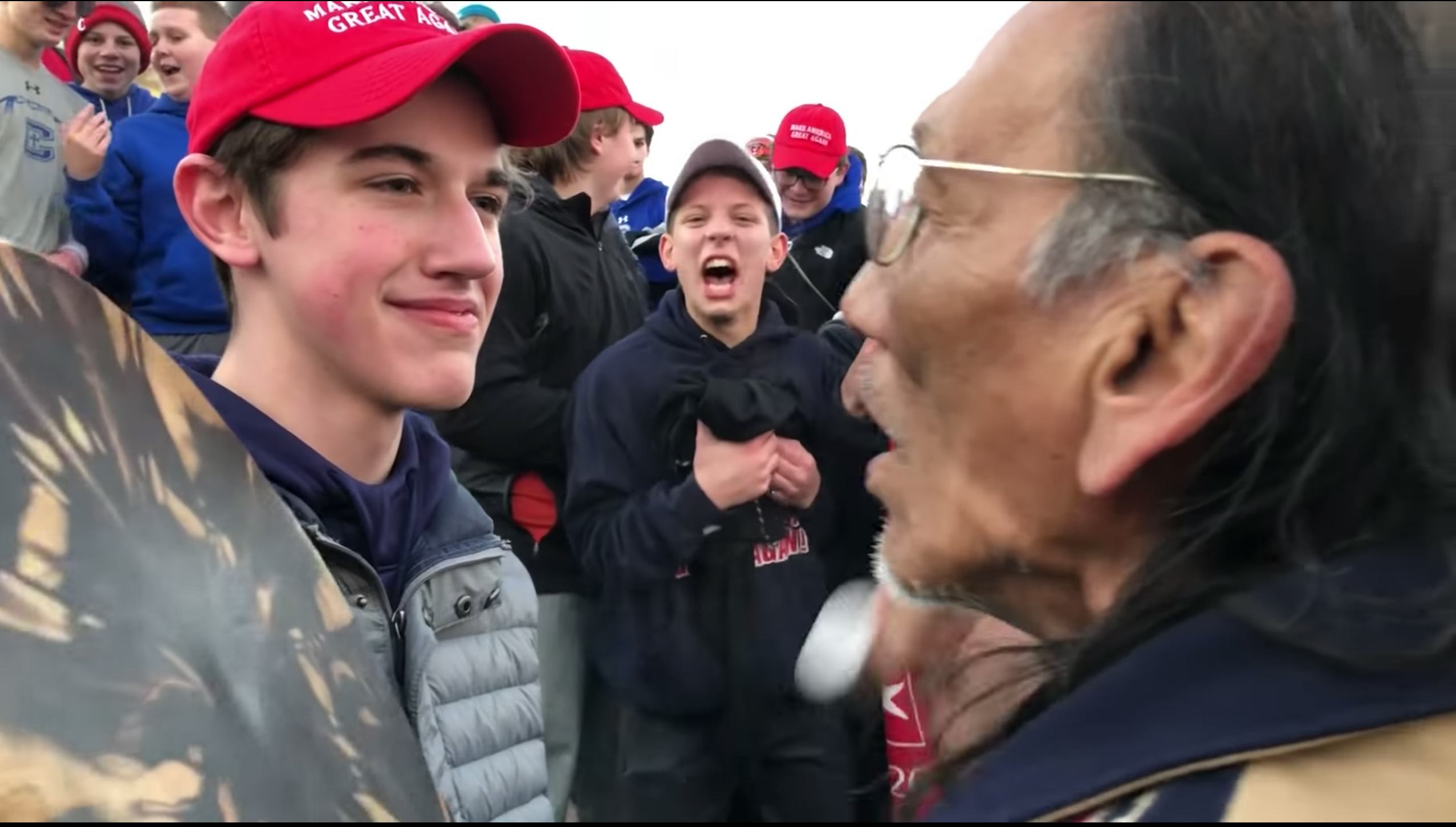 An eyewitness who filmed the incident told WLWT that Phillips had stepped in with his drum and chant when he saw the group of students beginning to clash with other nearby protestors. "He was trying to break up the conflict," Kaya Taitano told the news channel. "We ended up being surrounded by this group of kids." Taitano alleged the students were mocking Phillips' chanting. "I was amazed at the amount of disrespect shown," she said.