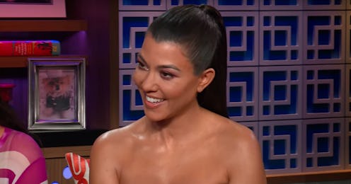 On the Jan. 14 episode of Watch What Happens Live With Andy Cohen, Khloé, Kim, and Kourtney Kardashian all sat down at once to field a ton of juicy questions. Contrary to what some fans might expect, there really wasn't any drama. For example: When one fan asked how she'd feel about Scott Disick potentially proposing to Sofia Richie, Kourtney barely blinked, and her response was surprisingly chill.
